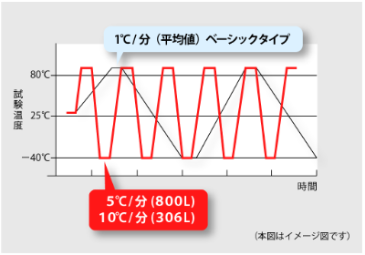 -40℃⇔85℃の評価試験で温度変化速度10℃/分・5℃/分を実現