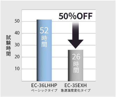 ベーシック・低温タイプと比較して、試験時間を50%短縮しました。
