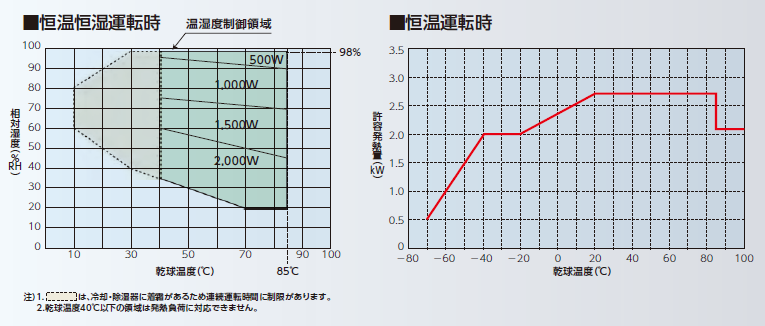 ここで運転可能範囲は、注2)記載の性能を満足することはできませんが、保護装置の作動により停止することなく継続して運転できる範囲を示します。