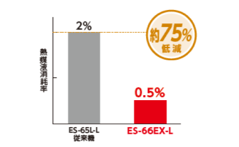 *日立旧型(ES-65L-L)および当社後継機エクセレント(ES-66EX-L)製品比較