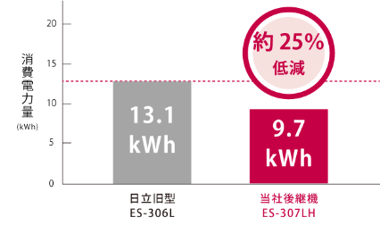 インバーター制御により消費電力量を低減(省エネモード時)